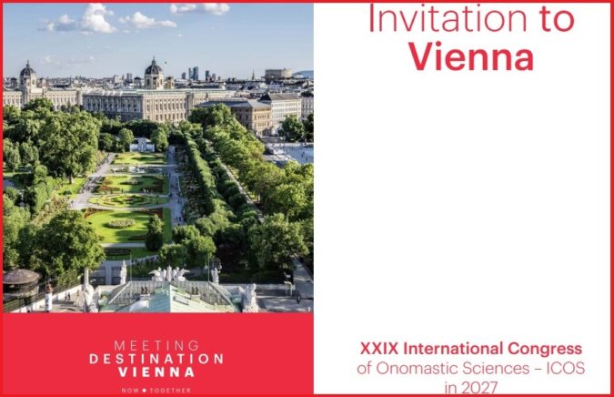 Ladies and Gentlemen, dearest Colleagues and Friends, It is with great pleasure that we present to you the sole bid for the Congress of the International Council of Onomastic Sciences (ICOS) to be held from August 16 to August 20, 2027, in the beautiful city of Vienna, Austria. Venue and Theme The Congress will...