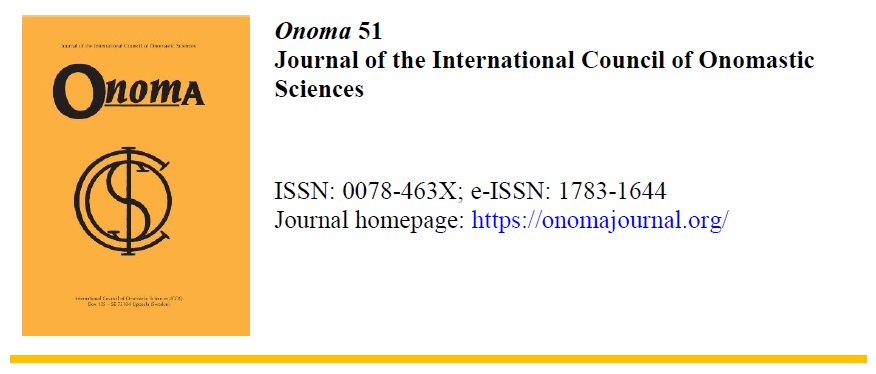 The Volume 52 has just been finalized. You may find this issue and upload from the Archive: https://onomajournal.org/archive/. Founded in 1950, Onoma (ISSN: 0078-463X; e-ISSN: 1783-1644) is the oldest journal in the field of onomastics and occupies a central role in the discipline. Since the Vol. 32, Onoma has been inviting topical research reports as...