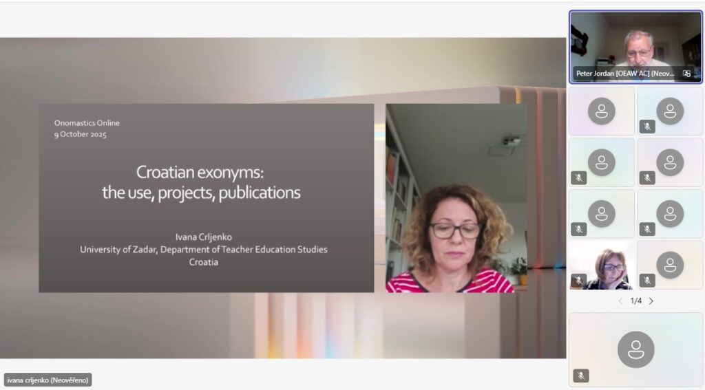On 9 October 2025, Ivana Crljenko (University of Zadar, Croatia) gave a lecture on Croatian exonyms: their use, projects, and publications. The record of the lecture is available on our YouTube channel: https://www.youtube.com/watch?v=pEppz9p6dxw